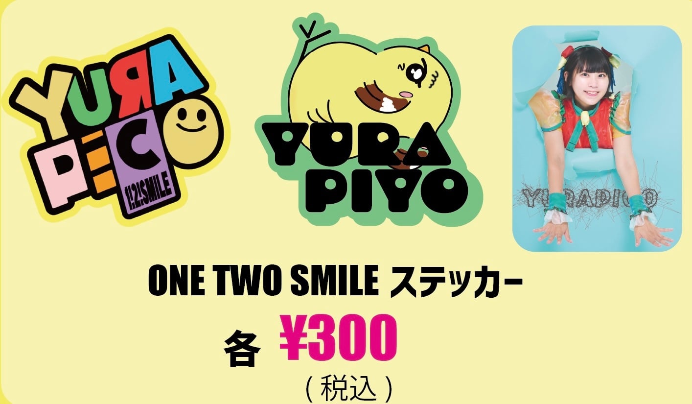 ONE TWO SMILEステッカー ・ゆらぴこロゴ ・ゆらぴよ ・ゆらぴこ 全3種類あります!コンプリートしてワンツーSmileしてね☺︎